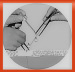 将备好的硅橡胶颅骨成形片用7号丝线骨缘打孔固定3处,成形欠平整或牢靠之处,取明胶海绵,涂医用胶胶后将修补材料与骨缘进一步粘合、压平。