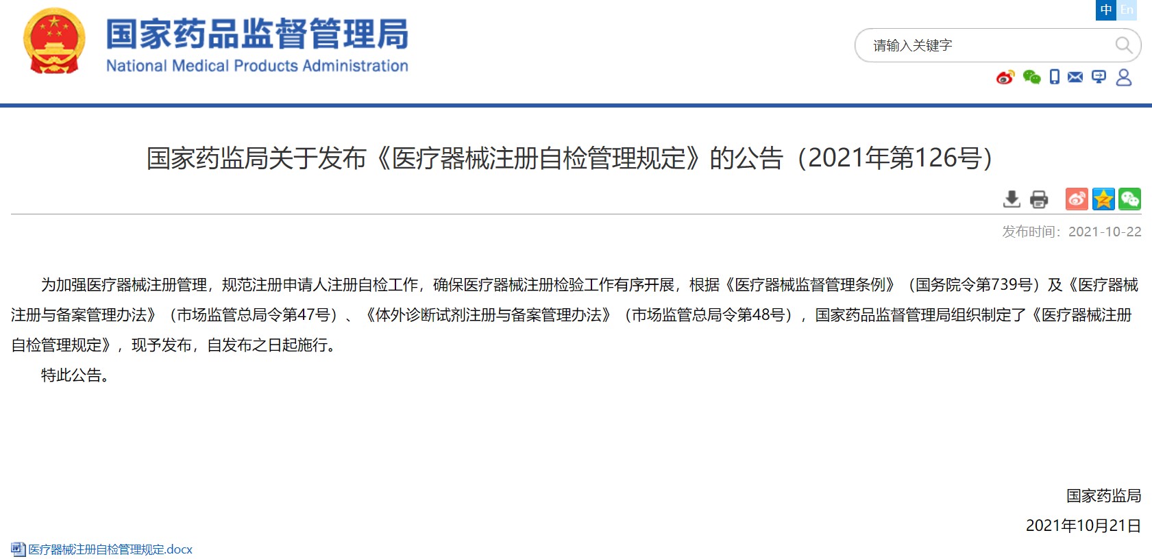 2021图解|三分钟速读《医疗器械注册与备案管理办法》附原文《医疗器械注册与备案管理办法》已经2021年7月22日市场监管总局第11次局务会议通过,现予公布,自2021年10月1日起施行。查看更多> -