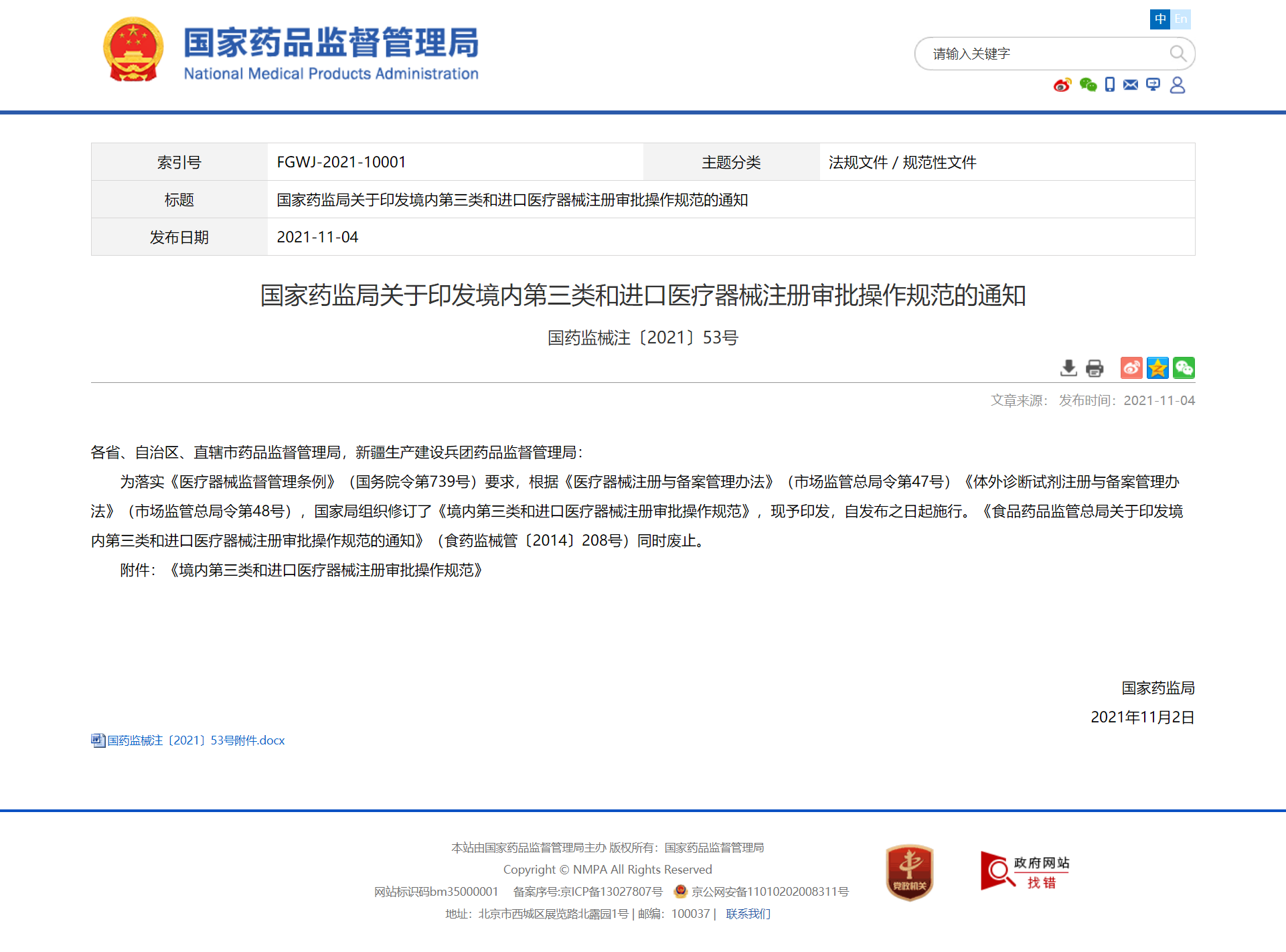 2021国家药监局关于印发境内第三类和进口医疗器械注册审批操作规范的通知国家局组织修订了《境内第三类和进口医疗器械注册审批操作规范》,现予印发,自发布之日起施行。查看更多> -